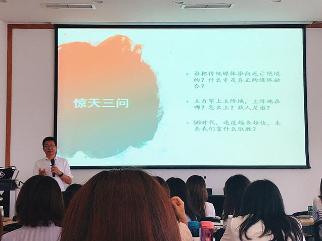 下午,《四川日报》一级首席记者、中国新闻奖得主梁现瑞作了“融合传播的内容生产”主题讲座,他立足5G快速发展的技术新时代,对传统媒体该何去何从进行深入分析,分享了的思考和见解。“新闻报道切忌大而空,”他指出,“很多这种报道就是我们有什么就全都摆上去,传播效果是不尽人意的。”他以自己所做过的报道与各领域理论为例,从专业角度出发,建议同学们注重由现象深挖本质,在浅阅读时代重视质量、多加思考。