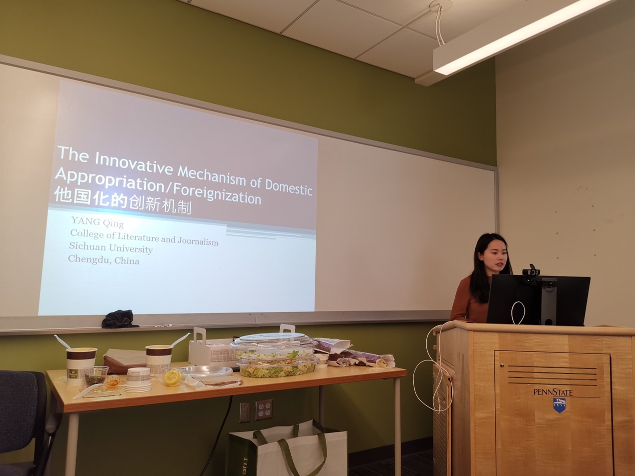 在访问期间,一行人还参加了由宾夕法尼亚州立大学Comparative Literature Studies(A&HCI期刊)与beat365体育官网平台全英文国际期刊Comparative Literature: East & West联合举办的“变异学与变异性”(“Variation and Varibility”)工作坊,与宾夕法尼亚州立大学比较文学系师生进行学术交流。