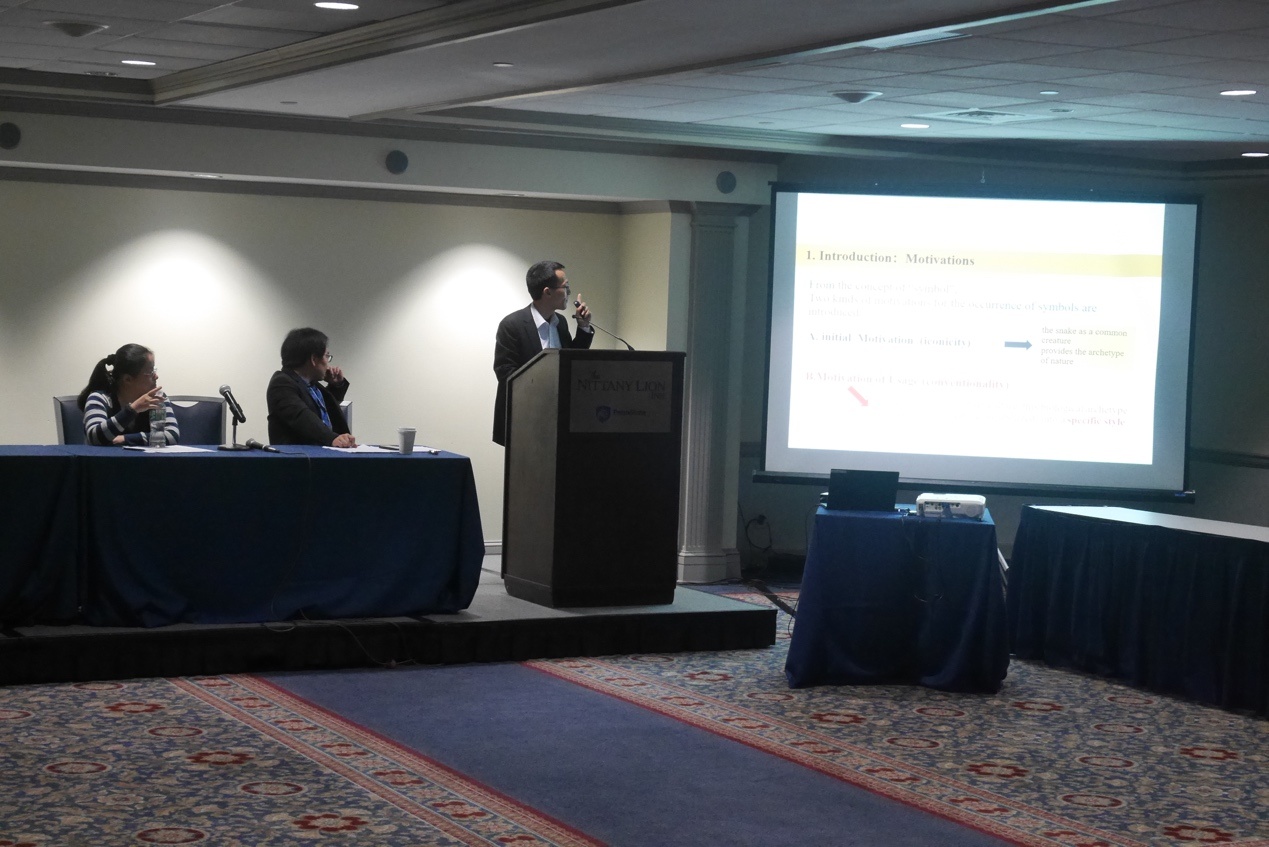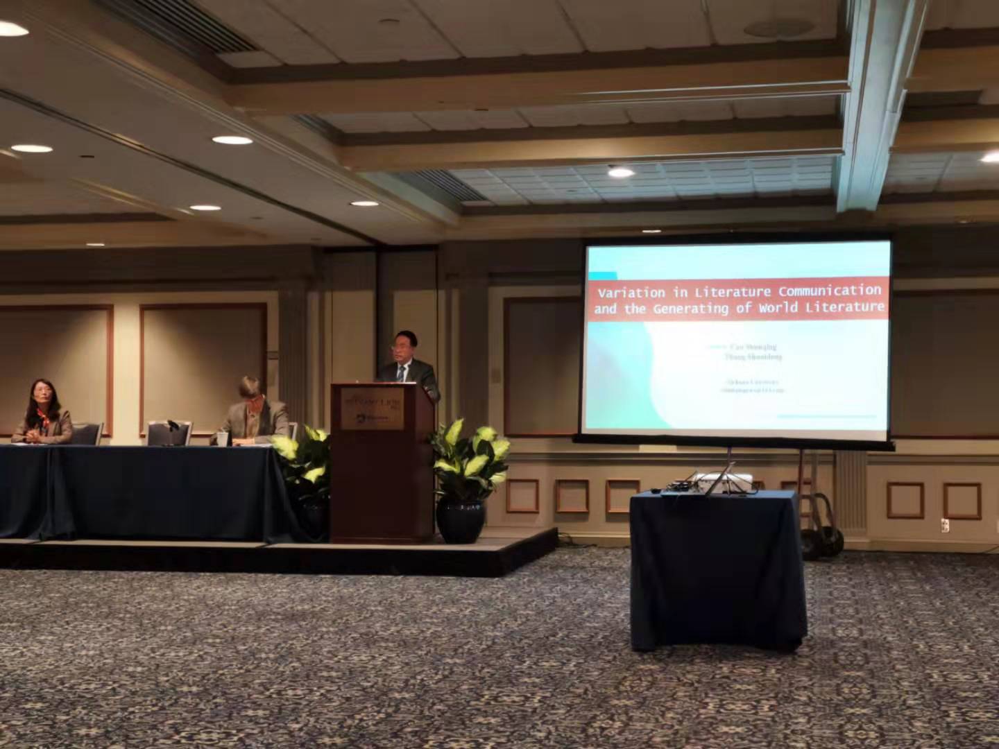 曹顺庆教授、博士生张帅东在会上就“文学交流中的变异与世界文学的生成”(“Variation in Literary Communication and the Generating of World Literature”)这一主题进行发言,认为变异是中国文学参与世界文化对话的一种有效途径,一种新的世界文学生成模式将会在文学交流的变异中被激活,并由此论证了比较文学变异学在世界文学研究中的重要作用。