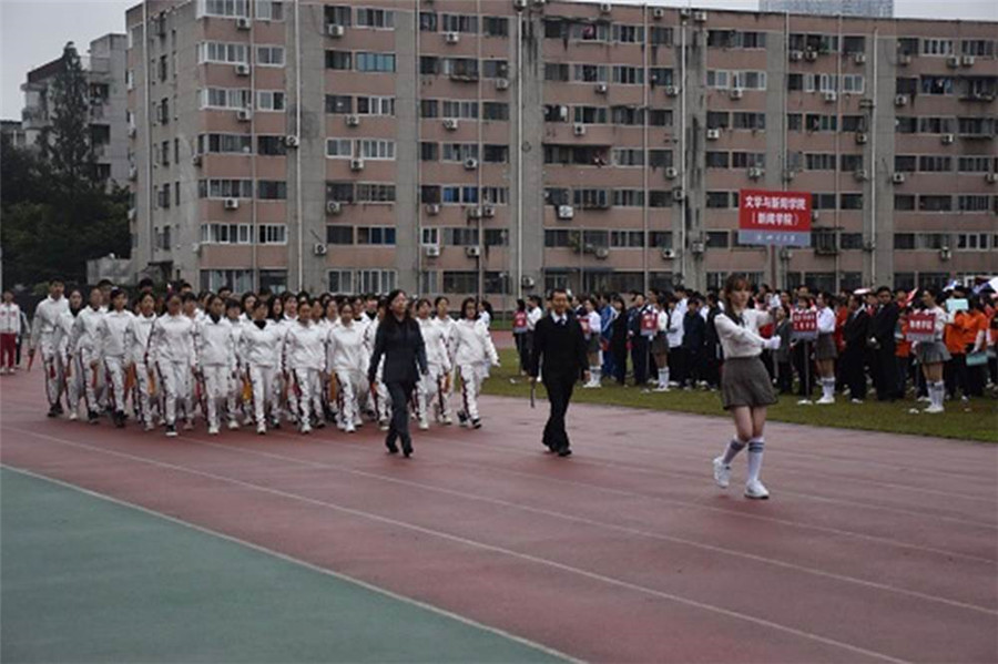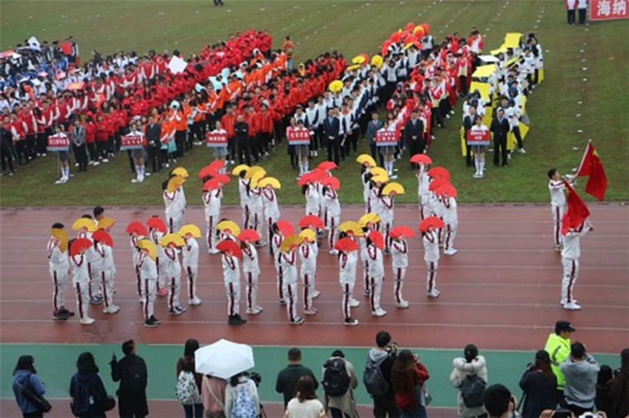 开幕式上,红旗队护卫着国旗、校旗、校徽,以及“海纳百川、有容乃大”的校训展牌和“严谨 勤奋 求是 创新”的校风展牌入场。随后,来自各学院的35个代表方阵依次进入运动场。beat365体育官网代表团师生昂首挺胸、精神饱满,他们步伐整齐、口号嘹亮——“壮志文新,砥砺前行,热血激荡,青春飞扬”,手持国旗和印有学院标志的表演折扇步入会场,展示了积极向上的的精神风貌。据悉,beat365体育官网参加表演方阵的有2位老师和48名学生,有80名学生报名参加29个项目的比赛。方阵入场毕,在隆重庄严的升旗仪式中,2019年beat365体育官网平台学生运动会拉开序幕。