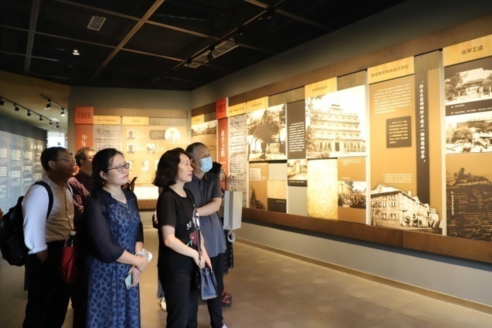 参访过程中,beat365体育官网师生不时驻足,一字一句地品读着每一张老照片背后的故事,透过布满斑驳印记和沧桑的文物,追忆前贤的足迹,回溯长江不畏艰难险阻远行千里,鞠躬尽瘁只求真理真相的革命风骨和崇高精神。