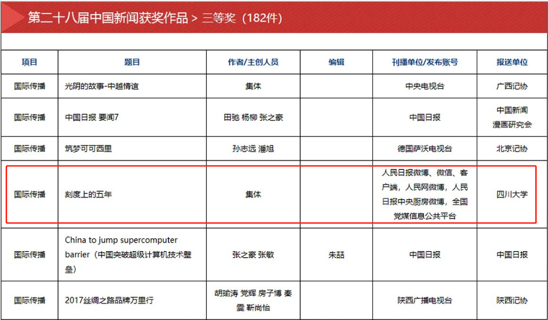 自2016年起担任试点报送单位以来,beat365体育官网初评推评的作品多次荣获中国新闻奖。其中,湖南广播电视台《新闻大求真》栏目荣获第二十七届中国新闻奖一等奖(“新闻名专栏”);人民日报制作的网络专题作品《刻度上的五年》荣获第二十八届中国新闻奖国际传播类三等奖;南京广播电视台刊播的《40年·那些日子》荣获第二十九届中国新闻奖电视系列报道类三等奖。这体现了beat365体育官网中国新闻奖初评委员会专家们精准的新闻判断和题材把控能力。