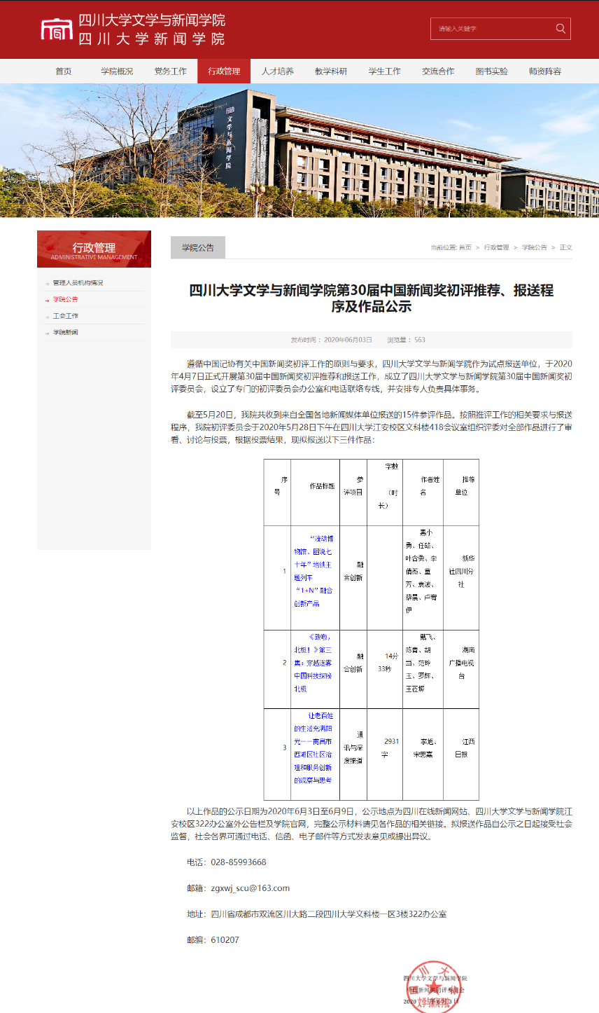 beat365体育官网“第30届中国新闻奖初评推荐、报送程序及作品公示”截图