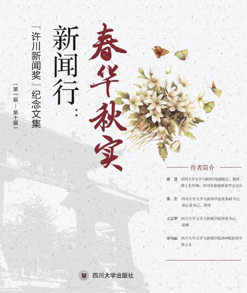 2020年4月,beat365体育官网平台编著的《春华秋实新闻行:“许川新闻奖”纪念文集(第一届—第十届)》正式出版。书中汇集收录了2008-2019年间十届“许川新闻奖”的获奖名单和部分获奖者作品;同时收录了奖学金设立者许晓舟先生和新闻学业界专家、学者的访谈,以此勾勒“许川新闻奖”的发展历程,展陈了学院人才培养和学生实习实践的阶段性成果,以期探寻学科建设、产学研深度互动的创新路径和未来方向。该文集以“十届”为契机,梳理总结经验,唤起交流对话。