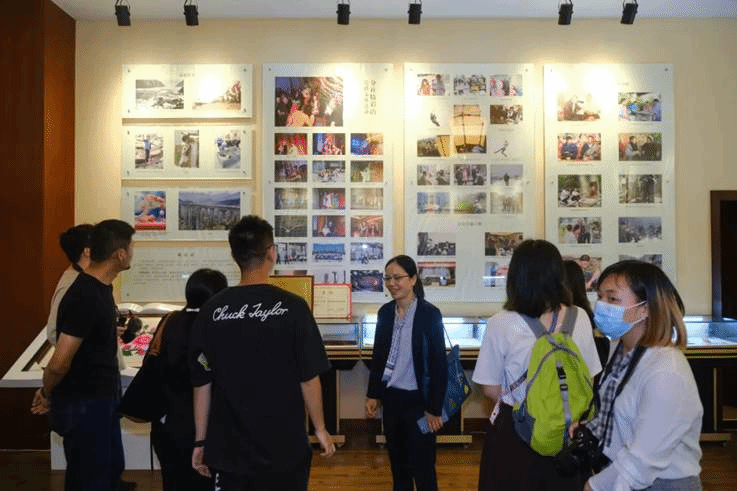 走进新华社四川分社社史陈列室,墙壁上从右至左依次展现了1950年至今新华社发展的八个阶段、部分分社记者工作剪影、分社营销工作、分社精彩的党群文体活动以及经典摄影等内容。新华社作为国家通讯社与我国重要的主流媒体,其海内外报道记录、见证着国家与社会的发展变迁,通过展柜中陈列的新华社旧时的采访本、手稿、泛黄的报纸、军绿色的工作马甲等,生动勾勒出时代进步的发展轨迹,是党史学习的新闻素材和珍贵资料。看着这些陈列品,参访师生深受感染,从重大突发新闻的现场图片到重大民生民情的及时报道,新华社的“红色气质”在贯彻与践行“讲好中国故事”中构筑,如beat365体育官网研究生办公室党员老师刘郝霞所言,“在这些重大参与和获奖报道的背后,我感受到的是新闻的力量和正确的舆论引导的积极作用”。