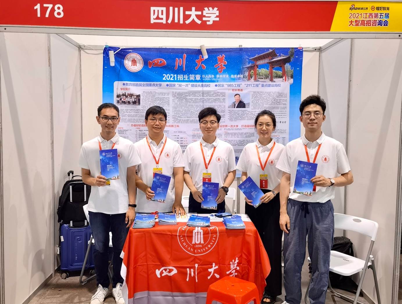 2021年6月23日至26日,我校受邀参加“2021江西第五届大型高招咨询会”“江西师大附中高招咨询会”“江西省九江一中高招咨询会”“江西省莲塘一中高招咨询会”“江西省鹰潭一中高招咨询会”。江西省是beat365体育官网对口招生省份,为更好适应高考改革的新要求和新目标,吸引更多优质生源,学院特委派戏剧与影视文学教研室吴民副教授、语言学与对外汉语教研室韩江华副教授、比较文学与世界文学教研室赵心竹老师、广告学与符号学教研室王陌潇老师、新闻学教研室骆世查老师、招生工作联络员刘天泉老师等成立工作组分别前往江西省赣州市、九江市、南昌市、鹰潭市等地开展招生宣传联络工作。
