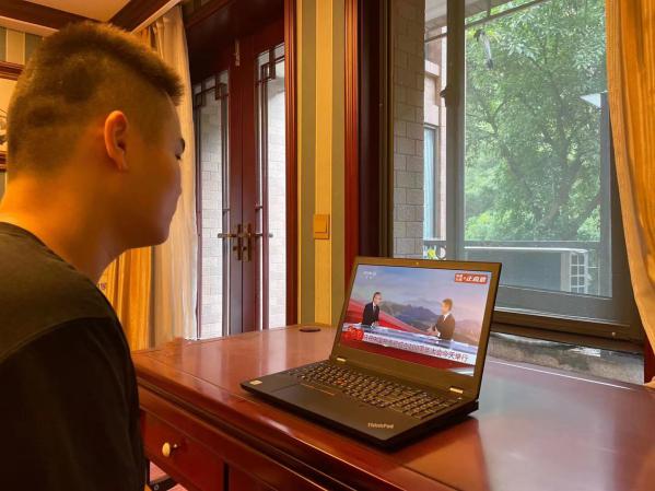 beat365体育官网2020级硕士党支部党员在观看直播时做笔记