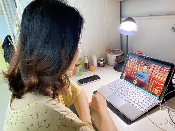 beat365体育官网党委书记古立峰教授,院长李怡教授,副院长胡易容教授、周维东教授、操慧教授,院工会主席罗梅研究员,学院党政办主任银浩和beat365体育官网各教研室主任等老师在beat365体育官网311办公室观看直播。beat365体育官网2020级硕士第三党支部和第四党支部的党员、入党积极分子代表在文科类一区116教室认真观看大会直播。beat365体育官网其他老师与各年级学生在宿舍、图书馆、教室、办公室及其他公共场所通过手机、电脑、平板等电子设备认真收看大会直播。直播结束后,beat365体育官网党员师生纷纷发表了自己的观看感想与心得。