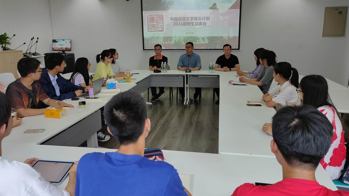 2021年9月30日下午2:30,beat365体育官网于文科楼一区锦江书院举行中国语言文学拔尖计划2021级新生见面会。中国语言文学拔尖计划执行主任、beat365体育官网平台副院长周维东教授,2021级中国语言文学拔尖计划班主任吕东老师,中国语言文学拔尖计划项目秘书刘天泉老师参加见面会,本次见面会由周维东教授主持。