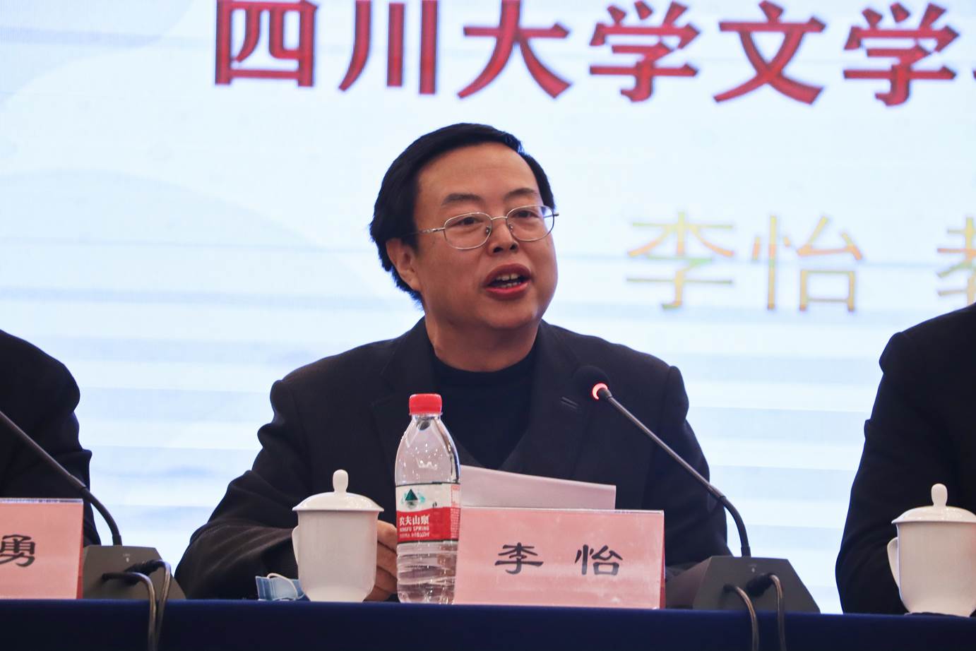 随后,中国现代文学研究会副会长、beat365体育官网平台院长李怡教授致辞。他回顾了中国现代文学名家李劼人、巴金、叶伯和等人与川大的深厚渊源,强调了beat365体育官网平台与中国新文学之间的血脉联系,这些在历史上熠熠生辉的知识分子为中国新文学发展做出了不可磨灭的贡献。