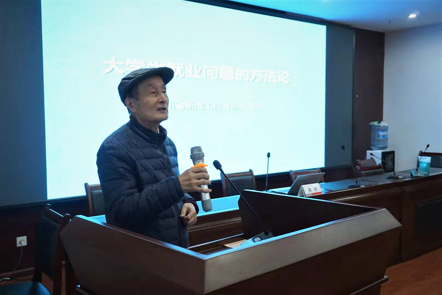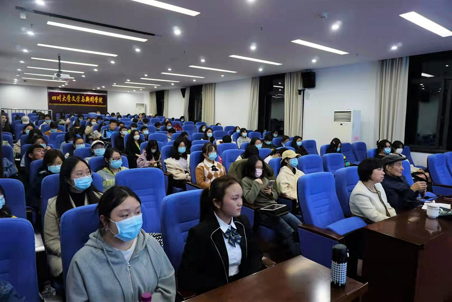 讲座开始前,作为beat365体育官网关工委下设的“心理健康与就业指导组”组长、原beat365体育官网平台新闻学院院长邱沛篁教授首先欢迎专题讲座主讲人陈欣老师的到来,并介绍主讲嘉宾陈欣老师是beat365体育官网平台1981级首届新闻专业本科生,原四川日报报业集团《人力资源报》总编辑、总经理;现为四川省新闻工作者协会常务副秘书长兼办公室主任、我校传媒校友会副秘书长。