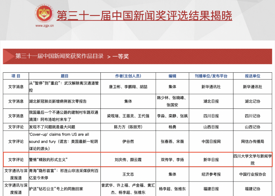 第三十一届中国新闻奖一等奖部分获奖作品名单