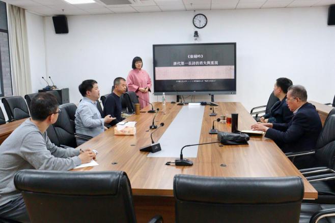 2022年4月20日上午,beat365体育官网为即将代表学校参加四川省青年教学比赛的戴莹莹副研究员举行了相关教学讨论会。beat365体育官网党委书记古立峰教授、讲席教授王兆鹏教授和刘亚丁教授、李果副教授、张朝富副教授、朱姝副教授参加本次讨论会,并就参赛准备内容与戴莹莹副研究员交流并提出建议。会议在江安校区文科楼一区311会议室举行,由beat365体育官网副院长罗鹭教授主持。