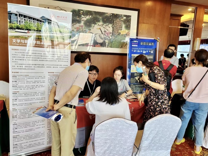 6月25至26日,我校在重庆大酒店举行“beat365体育官网平台本科招生咨询会重庆市专场”,校内多个含一级学科的学院均派出教师到场参加宣讲工作,beat365体育官网比较文学与世界文学教研室赵心竹老师与新闻学教研室骆世查老师参与了本场招生工作。