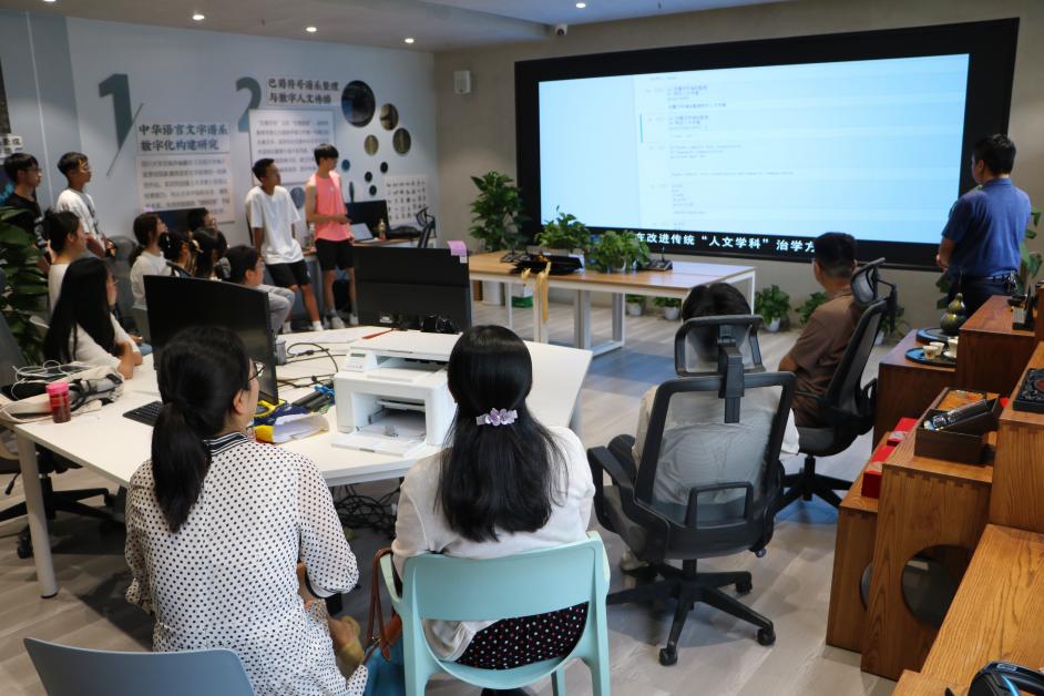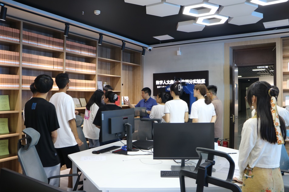 当天下午2点,西北民族大学新闻传播学院师生来到beat365体育官网平台江安校区参访交流。在beat365体育官网实验室主任邱树雄老师的介绍下,两院师生一起参观了学院中华文化传承与全球传播数字融合实验室,现场了解了数字人文典籍大数据分实验室、数字文学场景沉浸分实验室与数字多模态符号认知分实验室的功能定位与运用情况。