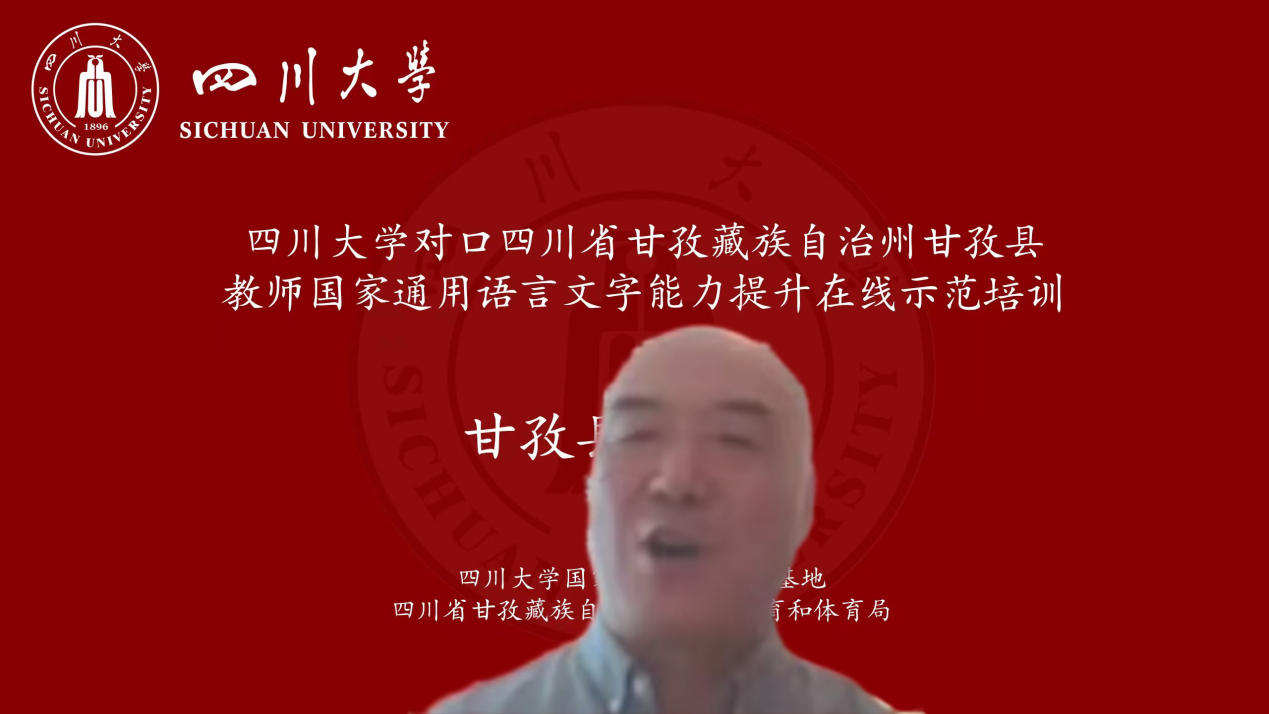 我校国家语言文字推广基地常务副主任吴尧教授向与会人员详细介绍了本次培训的具体情况。川大国家语言文字推广基地是教育部(国家语委)批准的第二批国家语言文字推广基地之一,基地师资力量雄厚。基地从成立伊始,积极响应国家号召,已先后承接多个国家级通用语言文字培训项目,取得了良好效果。此次在线培训活动,除了高质量的授课团队,基地还专门组建了管理团队和志愿服务团队。志愿者将及时与各位老师沟通交流,协助反馈学员们的问题与建议,协调培训过程中的各项事务,护航此次培训工作。随后,吴尧教授向参训学员表达期许:“希望大家在培训过程中能多与授课专家交流互动,能在培训中有所收获,切实提升自己国家通用语言文字的应用水平,并将学习成果应用于未来的教学中。”