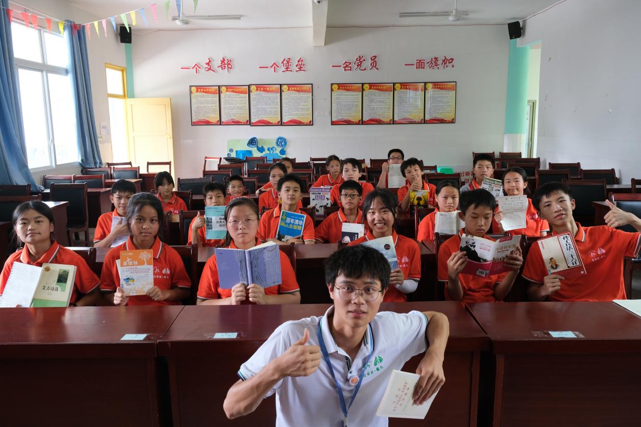 实践团在前期调研中了解到:学校留守儿童数量达258人,有将近三分之一的学生是留守儿童,且学生基础亟需提升,需要培养学习习惯,激发学习兴趣。针对调研结果,实践团设计了兼具趣味性和教育意义的课程和活动,让乡村学生在欢乐中学习,夏令营中,24名志愿者为109位学生带来了32节趣味课程、4场讲座和7项联合活动,涵盖德育、智育、美育、体育、劳育多个维度,内容涉及科普宣传、医疗健康、中华文化等多个方面,社会实践团还举办了读书会活动,促进学生养成良好的阅读习惯,引导学生精神世界成长,助力推动全民阅读。