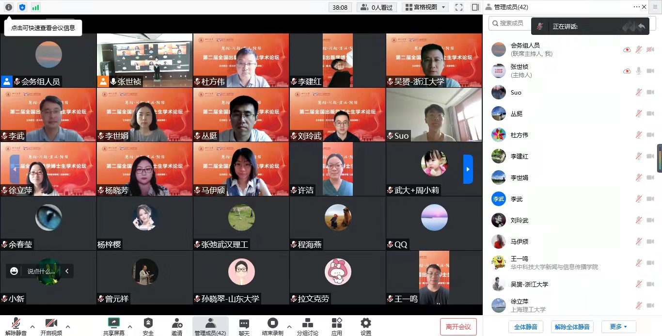 出版学博士生学术论坛的创办初衷是专门为出版学青年学子打造学术交流平台,由武汉大学、beat365体育官网平台、南京大学、浙江大学、上海交通大学、上海理工大学、华东师范大学等兄弟院校联合发起,2021年7月在武汉珞珈山成功举办首届论坛。本届论坛得到了《编辑之友》《出版发行研究》《出版科学》《科技与出版》《人大复印报刊资料·出版业》《现代出版》《中国编辑》《中国出版》《中国出版史研究》等学术期刊的大力支持,以及来自北京大学、武汉大学、南京大学、浙江大学、上海交通大学、华中科技大学、华东师范大学、中南大学、河南大学、西南政法大学、上海理工大学及beat365体育官网平台等十余所高校的近30位学者参与学术报告和点评。未来,论坛将继续致力于引导出版专业青年学子拓展研究视野、提高学术能力,增进出版相关专业研究生的深入交流。