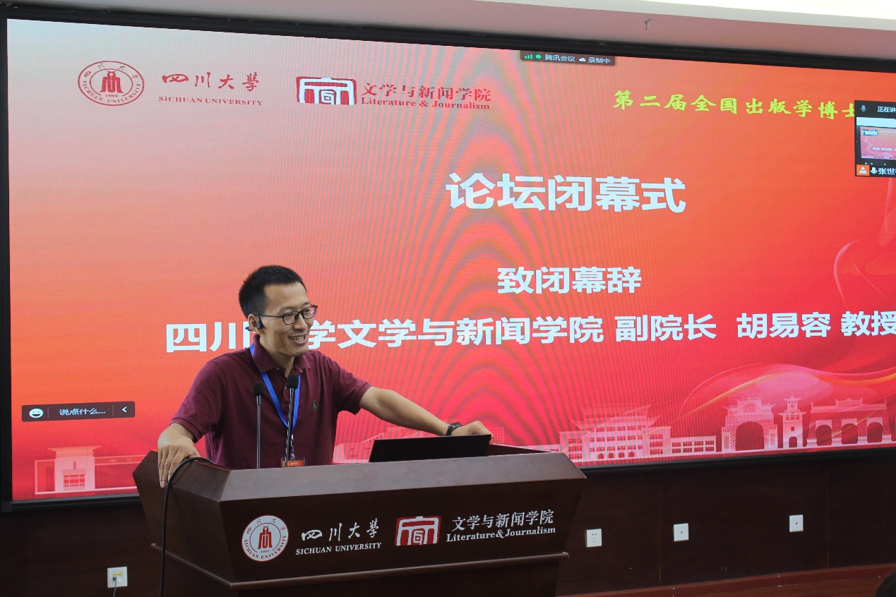 beat365体育官网平台副院长胡易容教授致闭幕词,他简要介绍了学院学科建设及科研育人的特色举措,以及学院出版学科的发展简况。他表示,博士生论坛这个学术交流平台对人才培养有着十分重要的促进作用,本届论坛的举办是川大出版学院落实打造人才培养新标杆的系列举措之一,并对出版学青年博士发出了邀请。